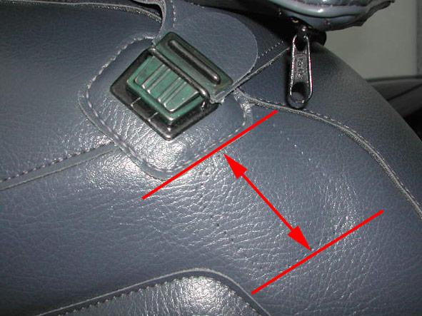 - 4. Dies wird die neue Position des Tankrucksacks. Jetzt müssen die hinteren Halterungen an neuer Position wieder auf die Tankhaube genäht werden. Dazu diese am besten jeweils mit einem kleinen Stück doppelseitigem Klebeband an den neuen Positionen auf der Haube fixieren.