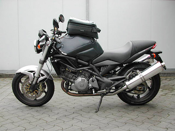 - 5. Jetzt noch etwas Fleissarbeit: Tankrucksack abnehmen, Tankhaube vom Tank und beide Halterungen an den neuen Positionen festnähen.