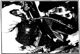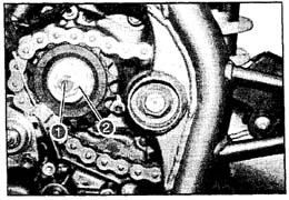 - Für eine gründliche Einstellung der Kette muß das Motorrad auf den Seitenständer gestellt werden.