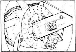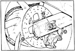 Nach Ausbau des Hinterrads die Flansch Zahnkranzhalterung entfernen. Die beiden in der Abbildung gezeigten Schrauben 2 abschrauben, den Zahnkranz auswechseln, wieder einbauen und die Schrauben mit dem vorgeschriebenen Drehmoment von 50 - 52 Nm festziehen.